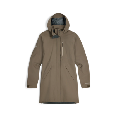 The Aspire 3L Trench is crafted from bluesign® approved 100% recycled 3L nylon with mechanical stretch that complements the body's movements. AscentShell™ Dry 3L fabric is fully seam-taped, waterproof, and windproof yet remains remarkably breathable for comfort in unpredictable weather. New for fall 2024, the Foray now features Nikwax's Direct.Dry, a durable factory-applied DWR exclusively available on our Foray/Aspire Collection. The adjustable hood with a bonded wire brim and stand collar, center front storm flap, and YKK® Aquaguard® zippers ensure comfort from head to hem. An elastic drawcord waist cinch provides a customizable, flattering fit, while hook and loop adjustable wrist cuffs seal out the cold. The zip chest and hand pockets safeguard essentials, and an integrated key clip ensures a ride home for the crew.